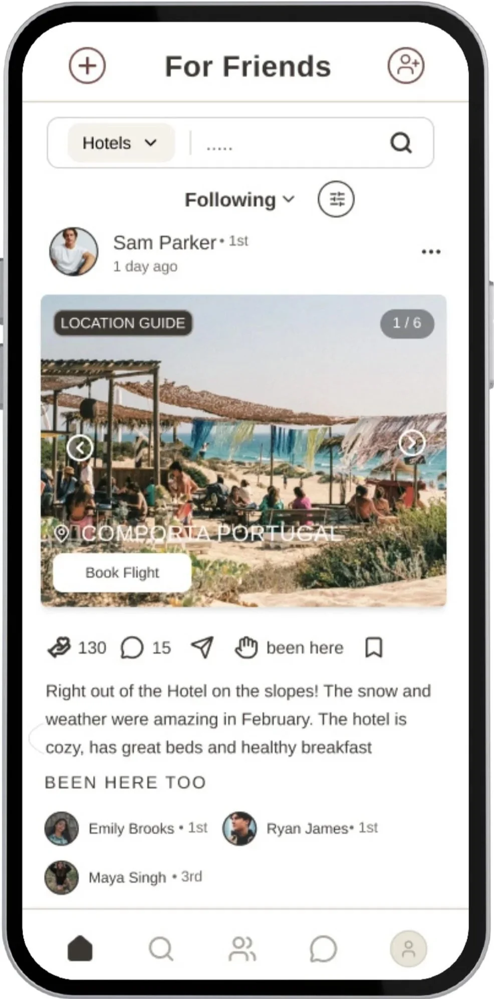 Find and book hotels and restaurants recommended by your friends.